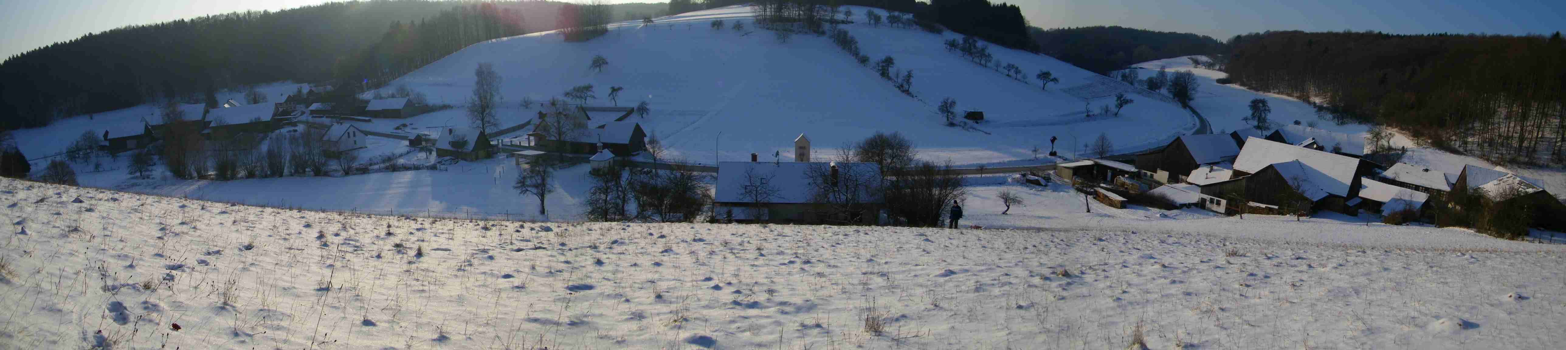 Die kleine Ortschaft Siedamsdorf - Stand 1999 Die Dorfgemeinschaften Siedamsdorf, Kaspauer und Altendorf erhielten den Sparkassen-Förderpreis für herausragende Leistungen im Natur- und Umweltschutz, überreicht durch Herrn Landrat Leutner im April 1999 wir gehören zum Stadtgebiet der Stadt Weismain Staatl. anerk. Luftkurort, das Tor zur fränkischen Schweiz, Landkreis Lichtenfels ,Regierungsbezirk Oberfranken, gelegen im Freistaat Bayern - Deutschland. Die Ortschaft Siedamsdorf liegt in romantischen Tal Schöpfleinsgrund, der Wasserlauf im Tal hat den Namen "Schöpfleinsgraben", er mündet in der Weismain welche sich im MAIN bei Burgkunstadt verliert. Unser Dorf wurde erstmals Urkundlich erwähnt 860 n Chr. in den Kirchenbüchern des Erzbistums Bamberg ( das Verzeichnis der Bischöfe und Donkapitularen von Bamberg Seite 191) Geografie: Länge: 50° 5` Nord Breite: 11° 12 `Ost Unser Dorf hat 13 Wohnhäuser mit 43 Einwohnern. Ein Haus ist nicht mehr bewohnt. Bis vor1980 waren noch 2 Gastwirtschaften vorhanden, 7 Landwirtschaftliche Betriebe werden im Nebenerwerb Bewirtschaftet Die Ortschaft ist geprägt durch zwei Ansiedlungen, die ca. 200m voneinander entfernt an Quellen gegründet wurden. Die Ortschaft liegt im Tal bei ca. 400m, der Kröttenstein (Mitte des Bildes) erhebt sich auf 536m über NN. Durch neuere Baumaßnahmen beginnt die Ortschaft langsam zusammenzuwachsen, wodurch der ursprünglicher Charakter verloren gehen wird. Ortsansicht von 1999 Panorama aus 3 Bildern