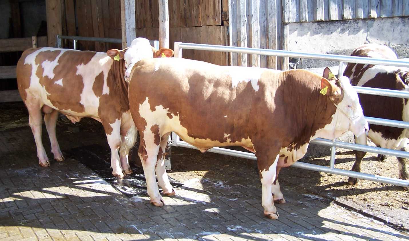 ein Bäuerlicher Nebenerwerbsbetrieb mit 12,5 ha Nutzfläche und 6 ha Wald Zum lebenden Inventar auf unserem Hof gehören: neben unseren Katzen auch noch die männlichen Zuchtkälber, die wir zu Zuchtbullen großziehen.